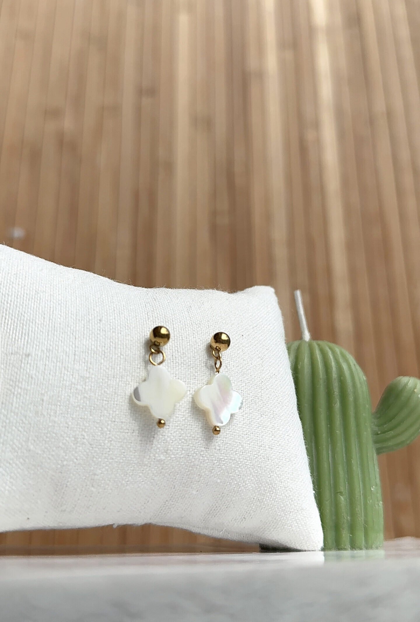 Supports en acier inoxydable, perles en nacre