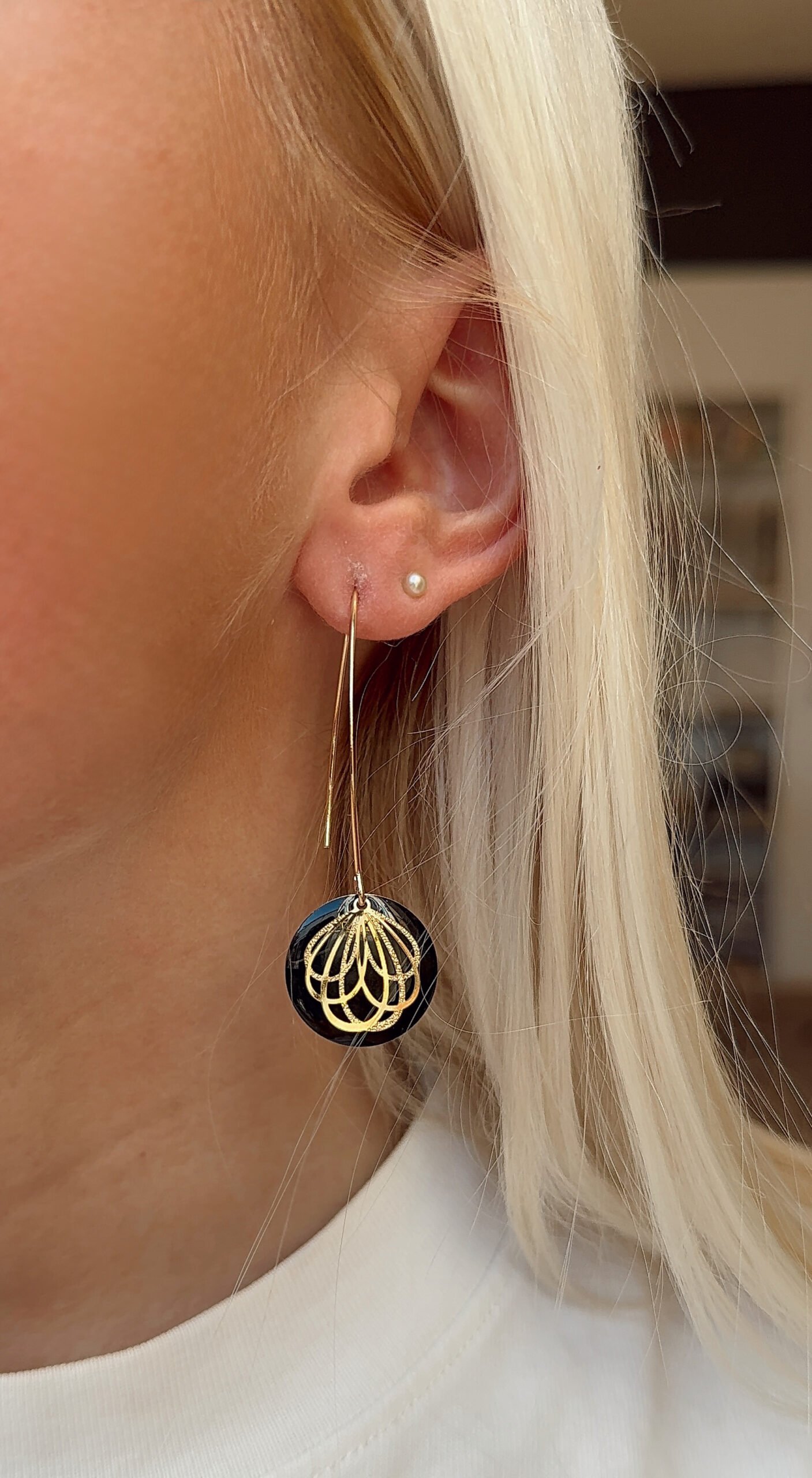 Supports en laiton doré à l’or fin, perles émaillées