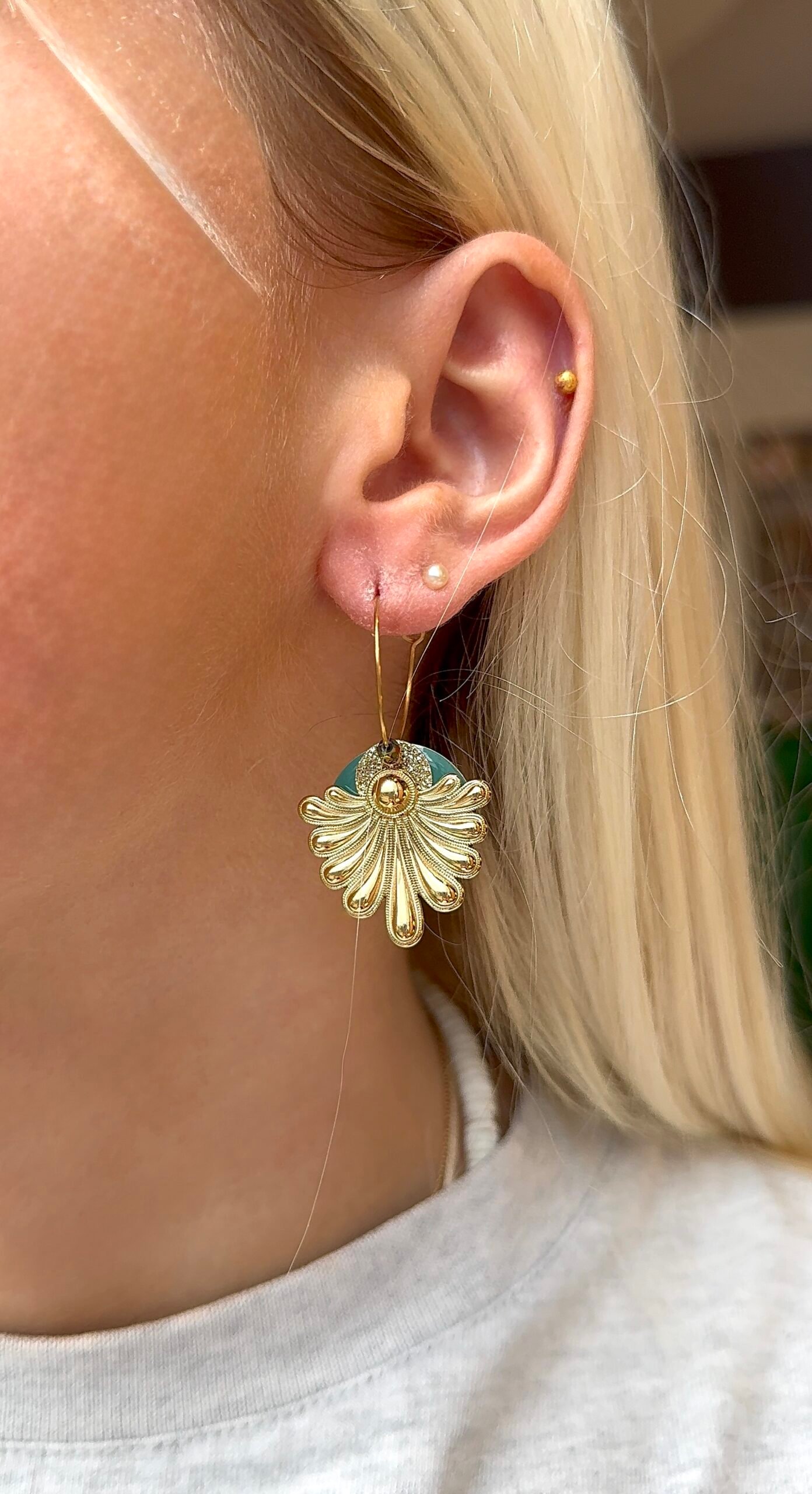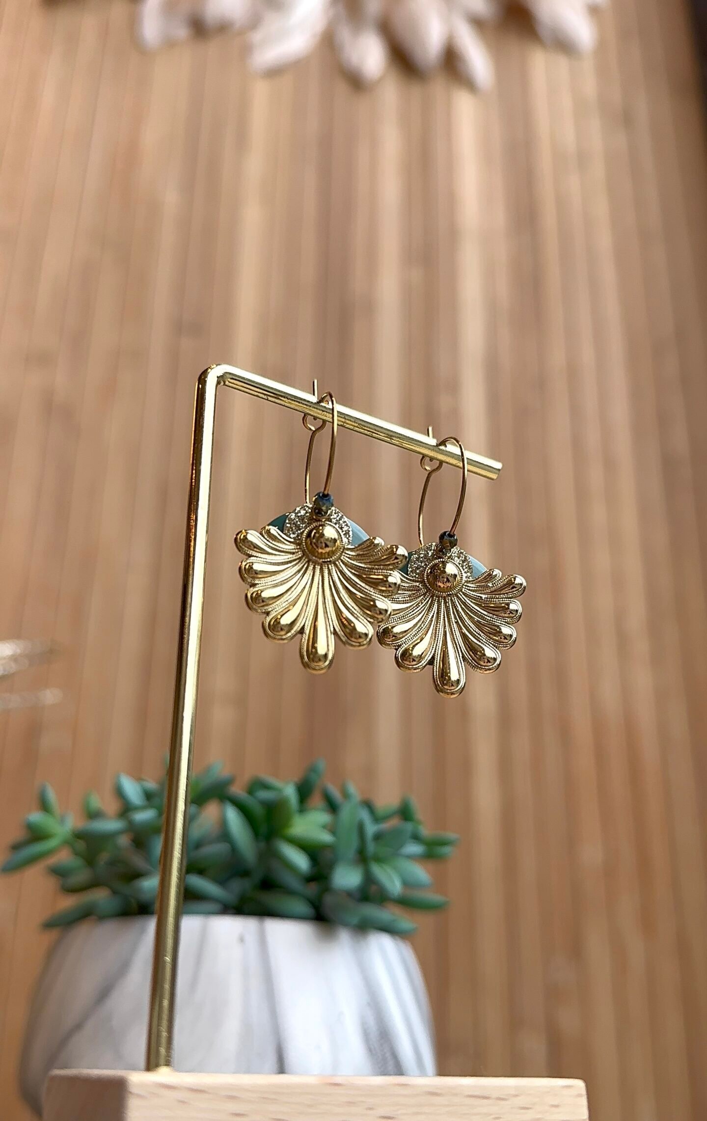 Supports en laiton doré à l’or fin, perles émaillées
