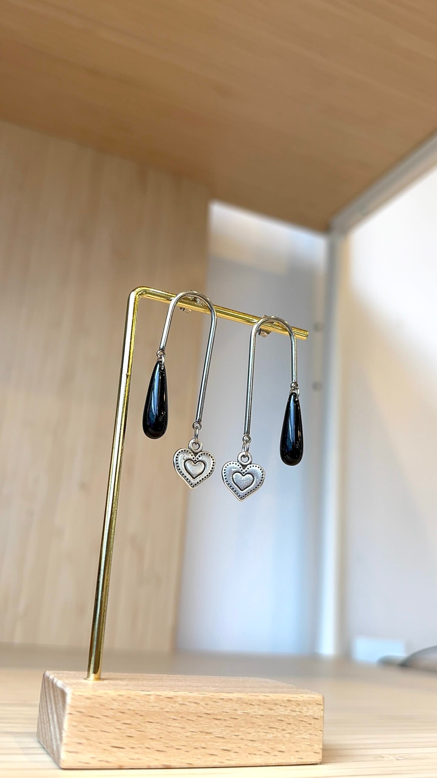 Supports en laiton argenté, perles en résine