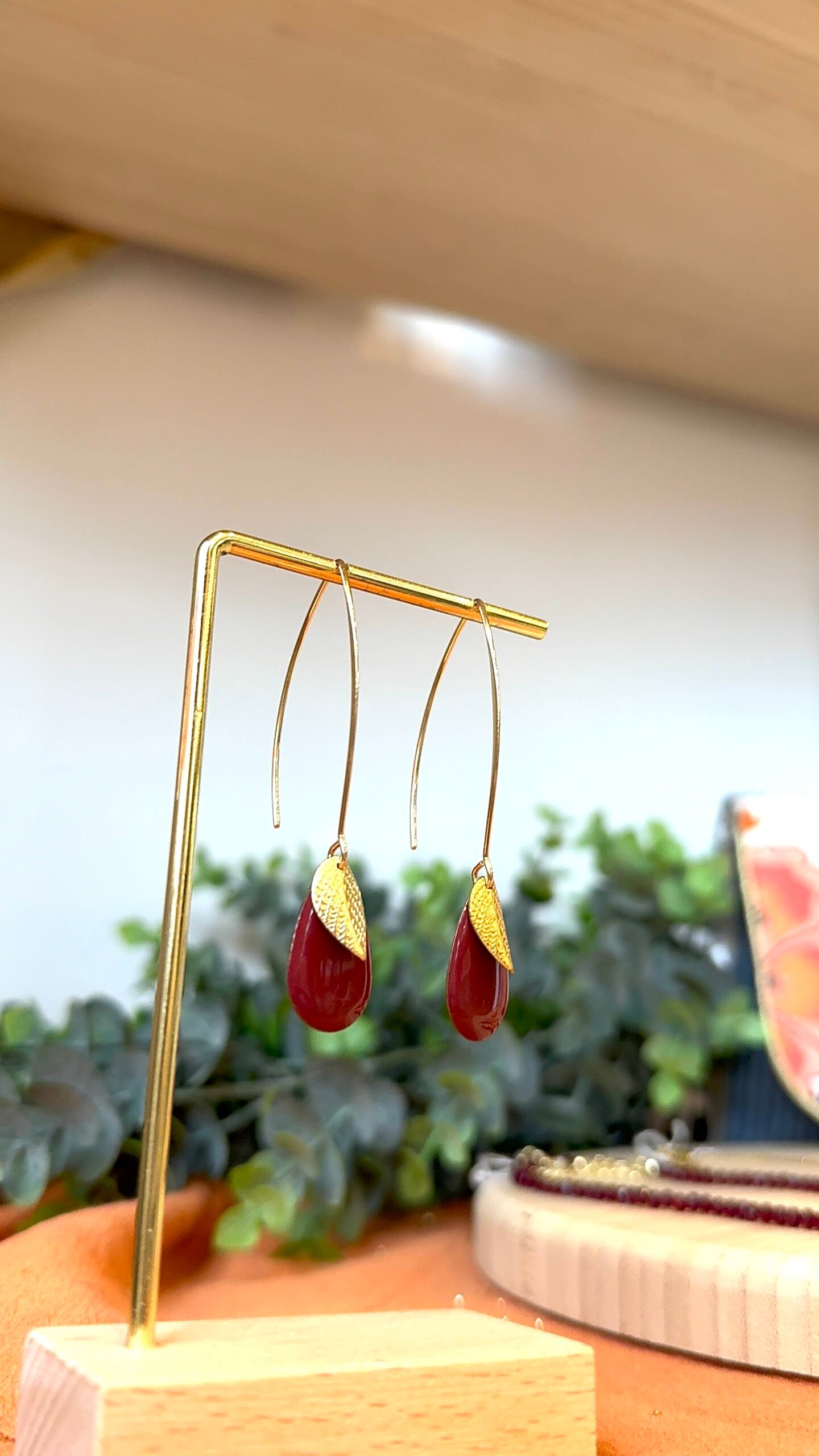 Supports en laiton doré à l’or fin, perles émaillées