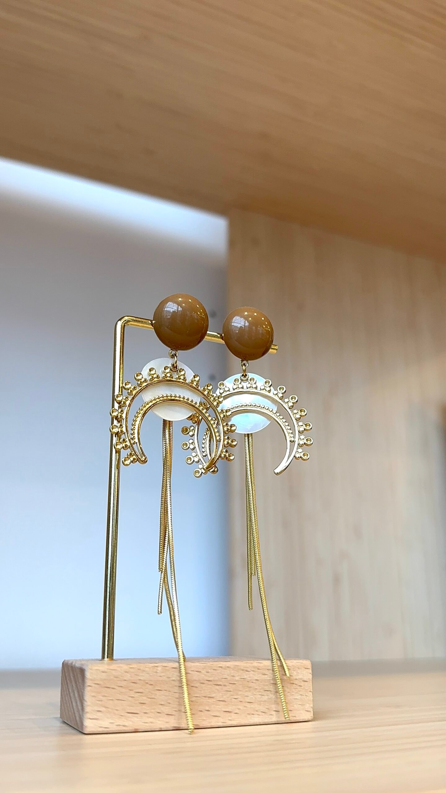 Supports en laiton résiné doré à l’or fin , perles en nacre