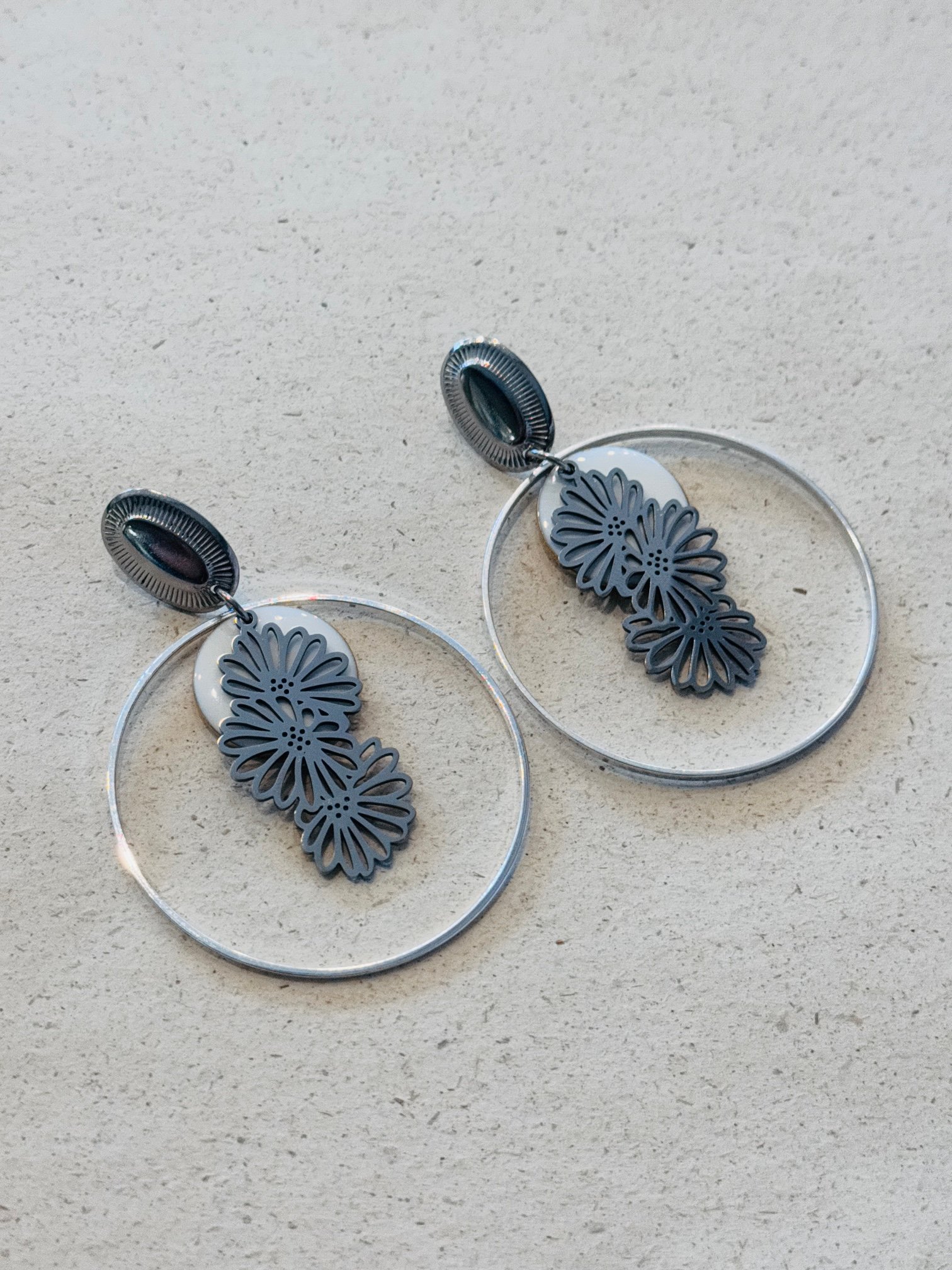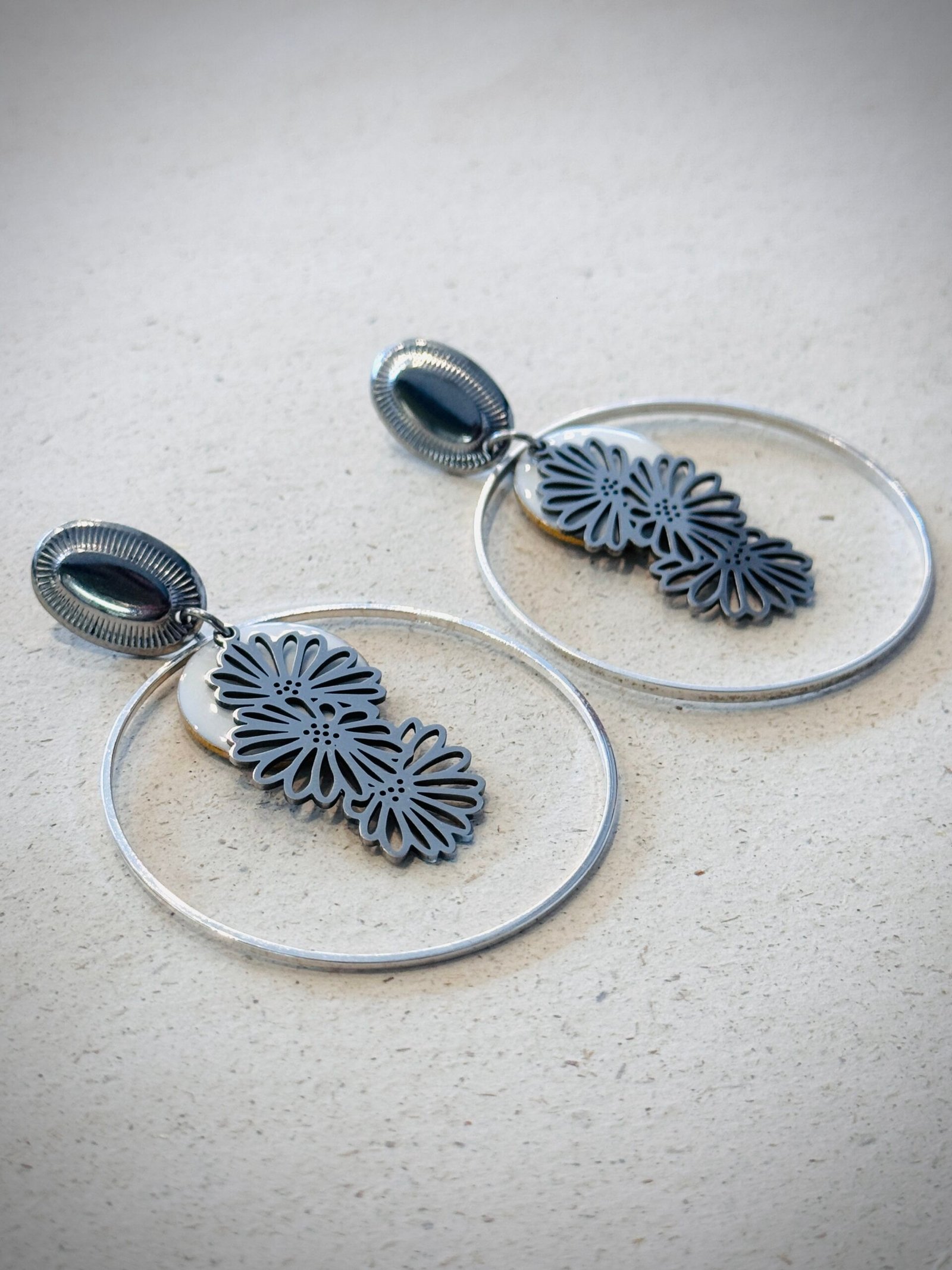 Supports en laiton argenté, perles émaillées