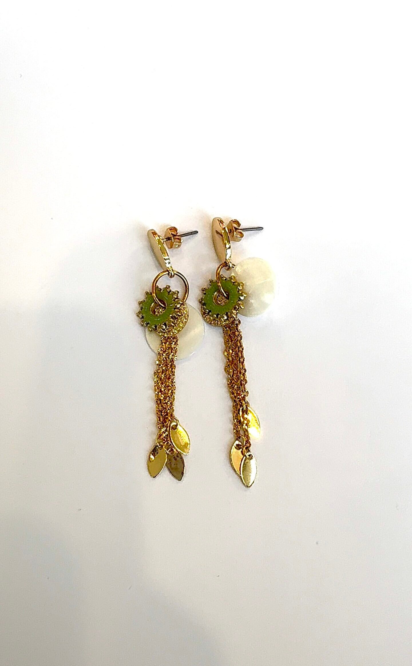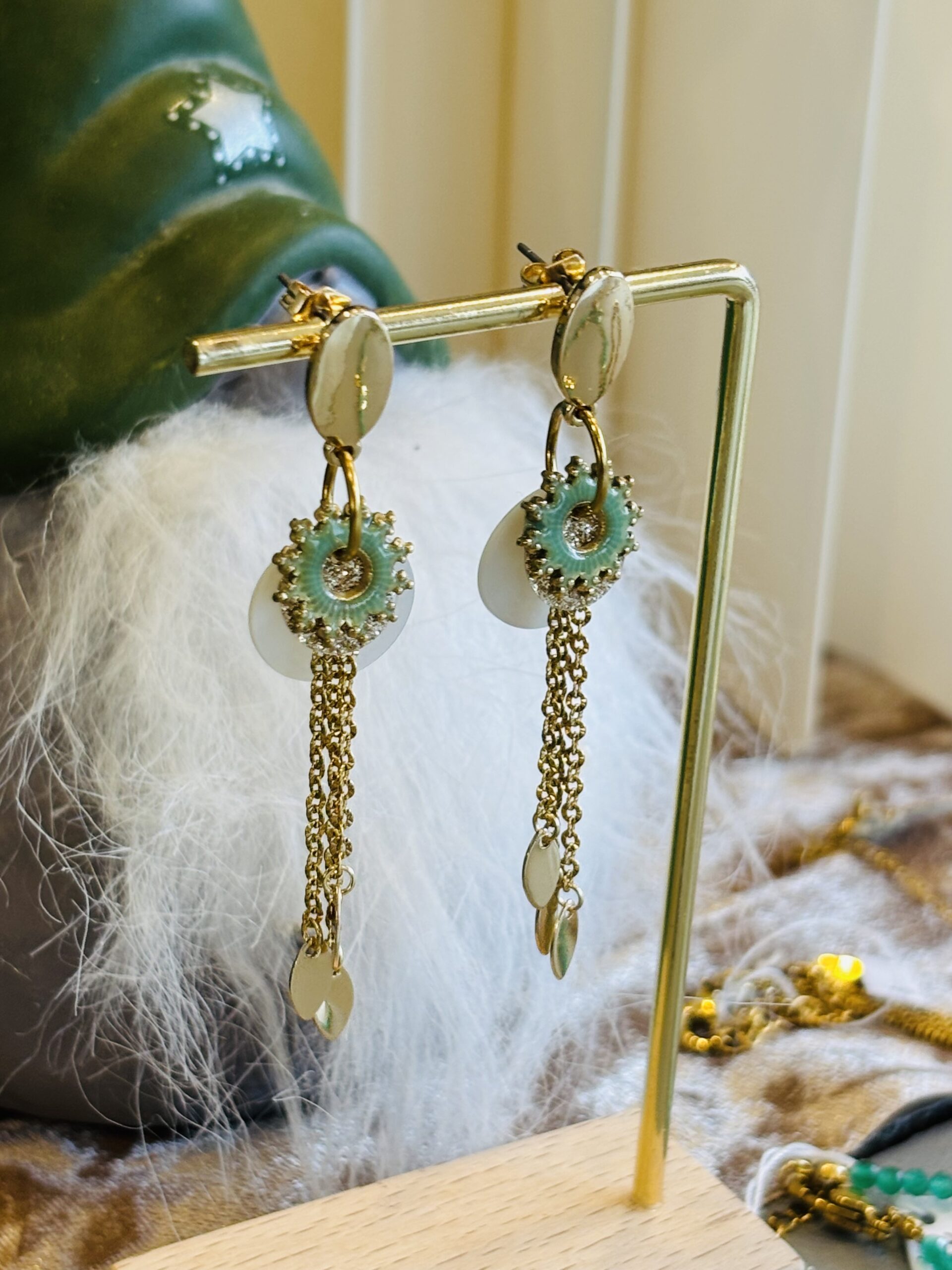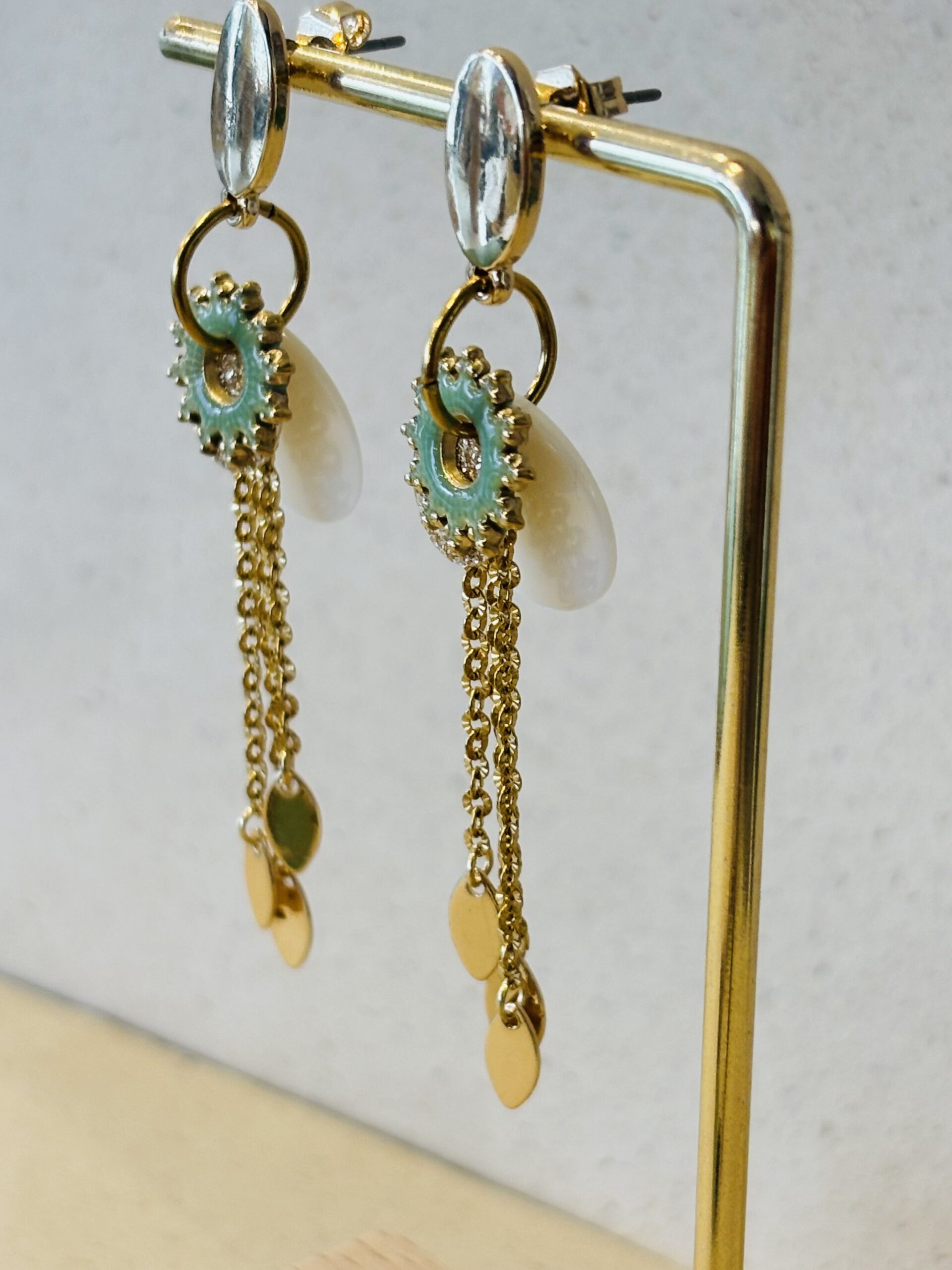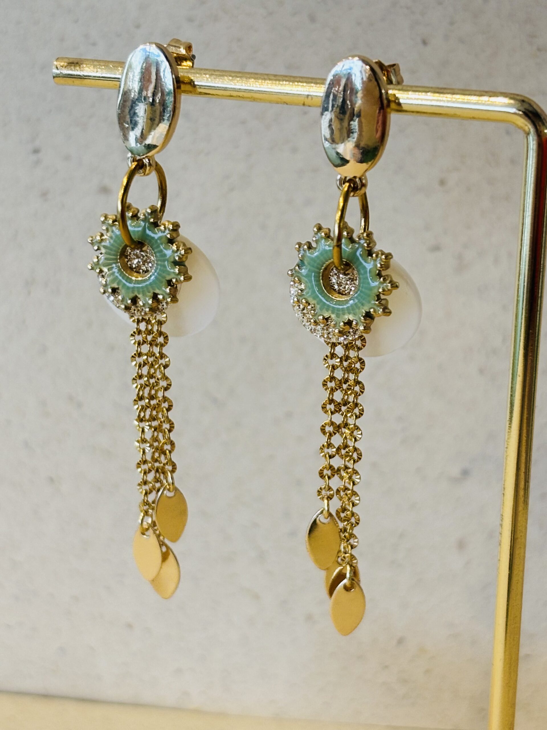 Supports en laiton doré à l’or fin, perles émaillées, nacre