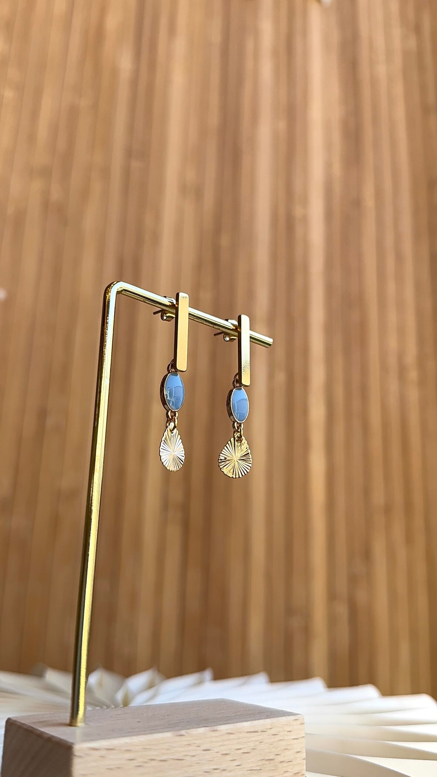 Supports en acier inoxydable, perles émaillées, navette en laiton doré à l’or fin