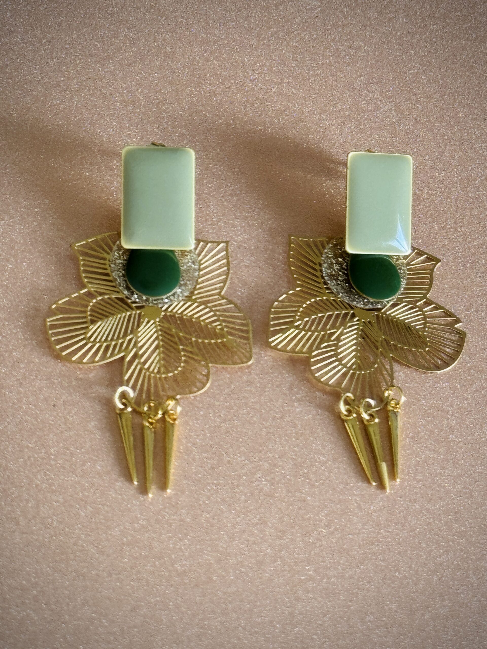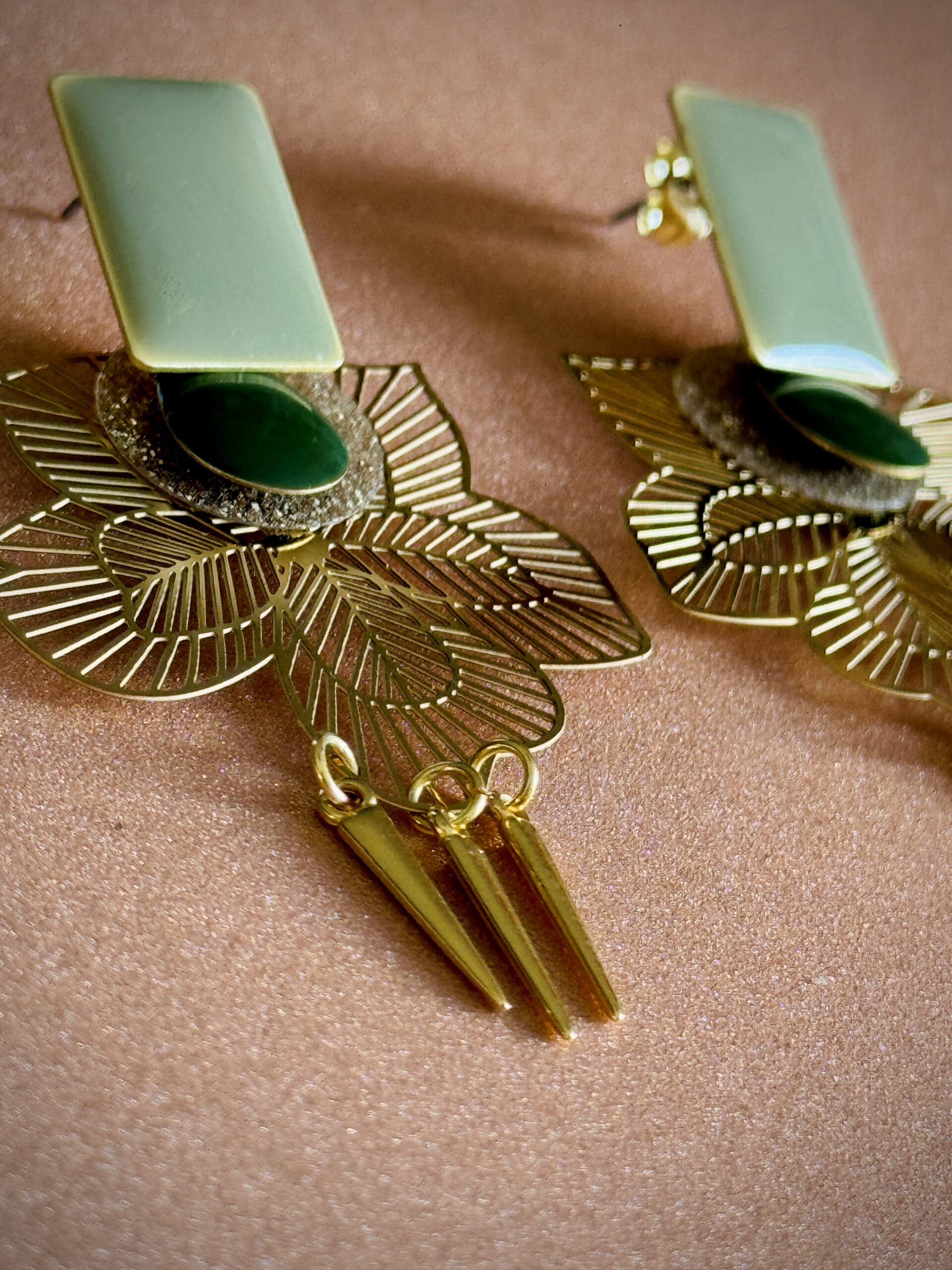 Supports émaillés en laiton doré à l’or fin, perles émaillées