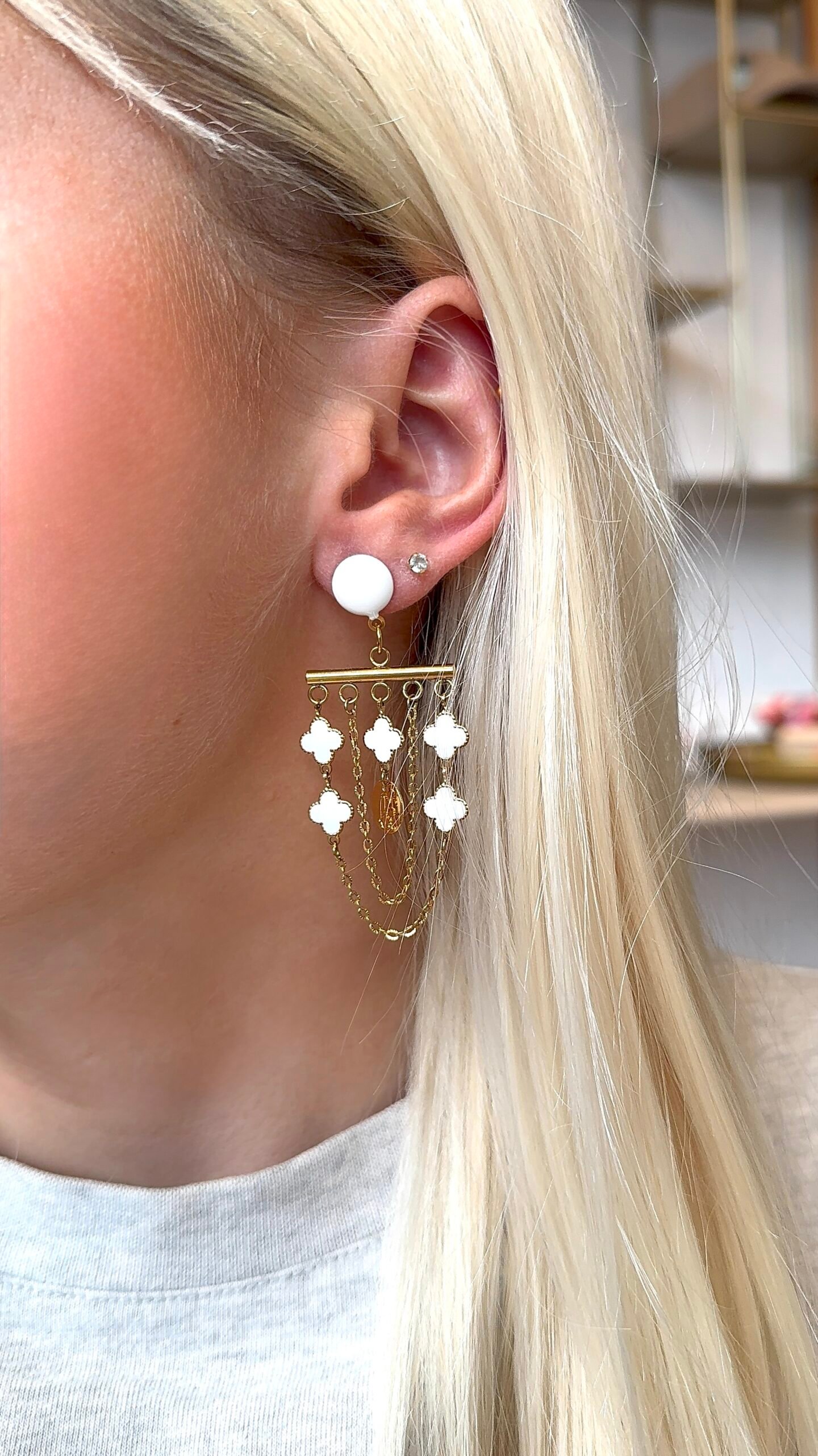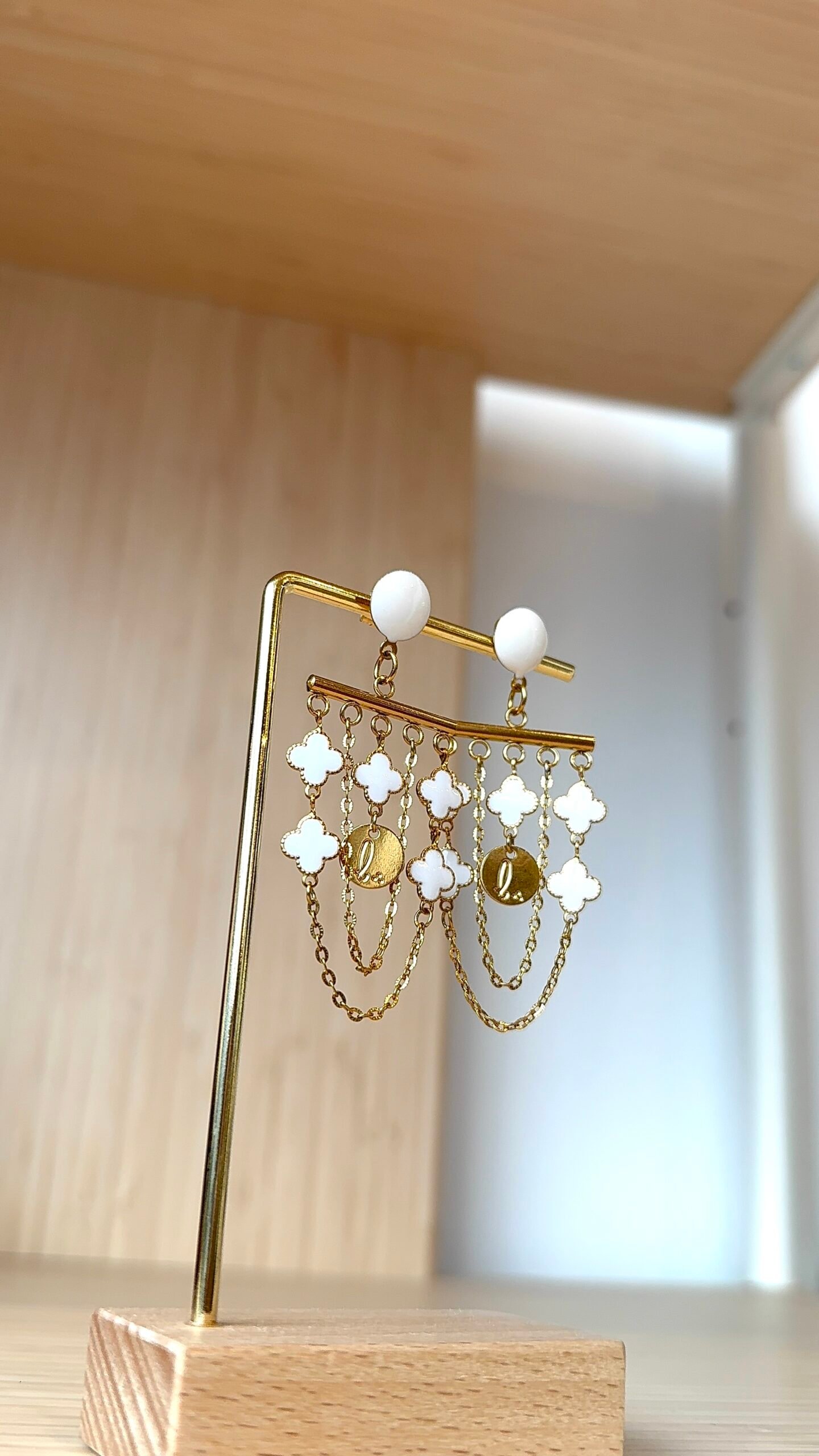 Supports en laiton doré à l’or fin, perles émaillées