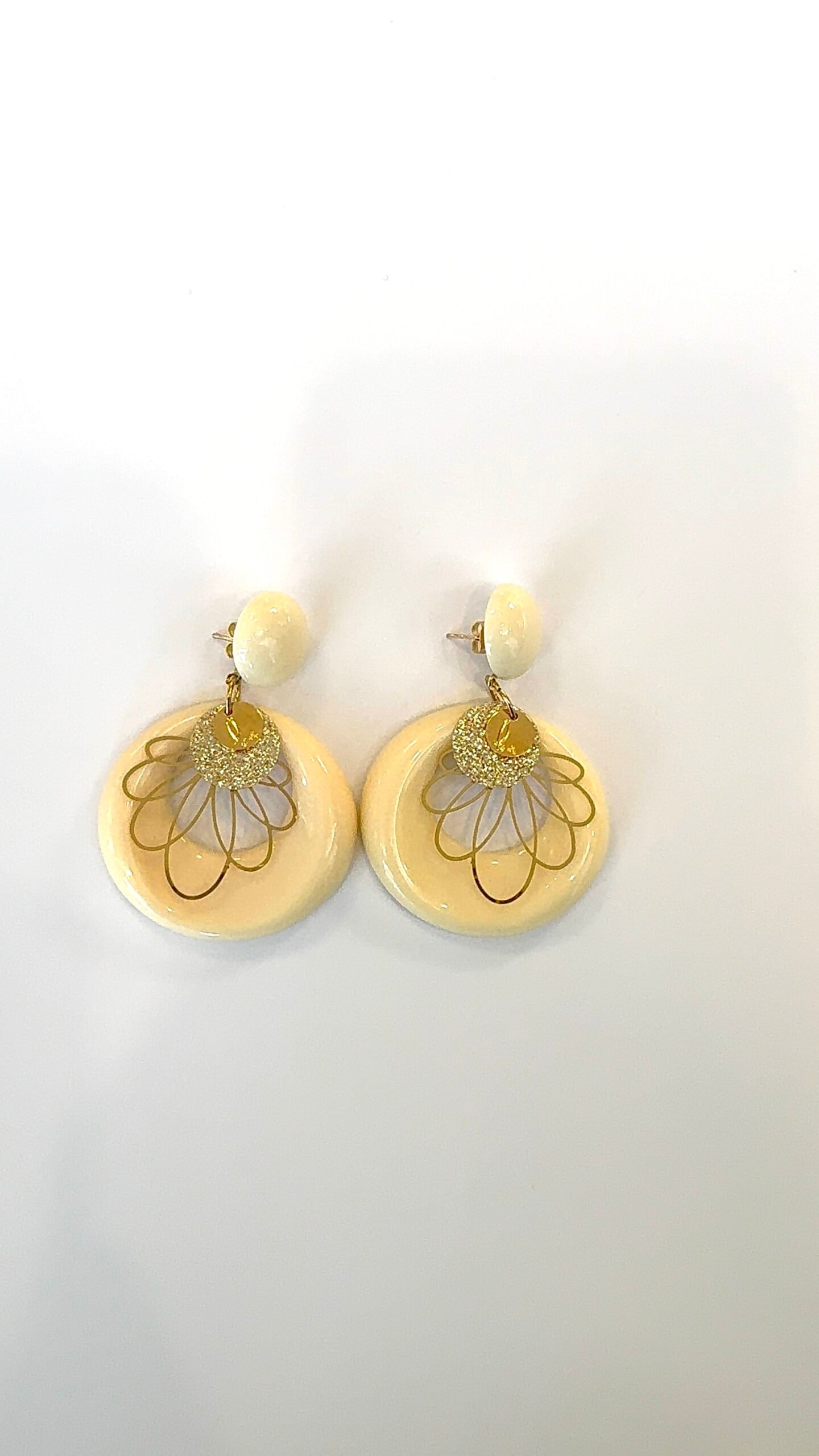 Supports en laiton résiné doré à l’or fin, perles en résine