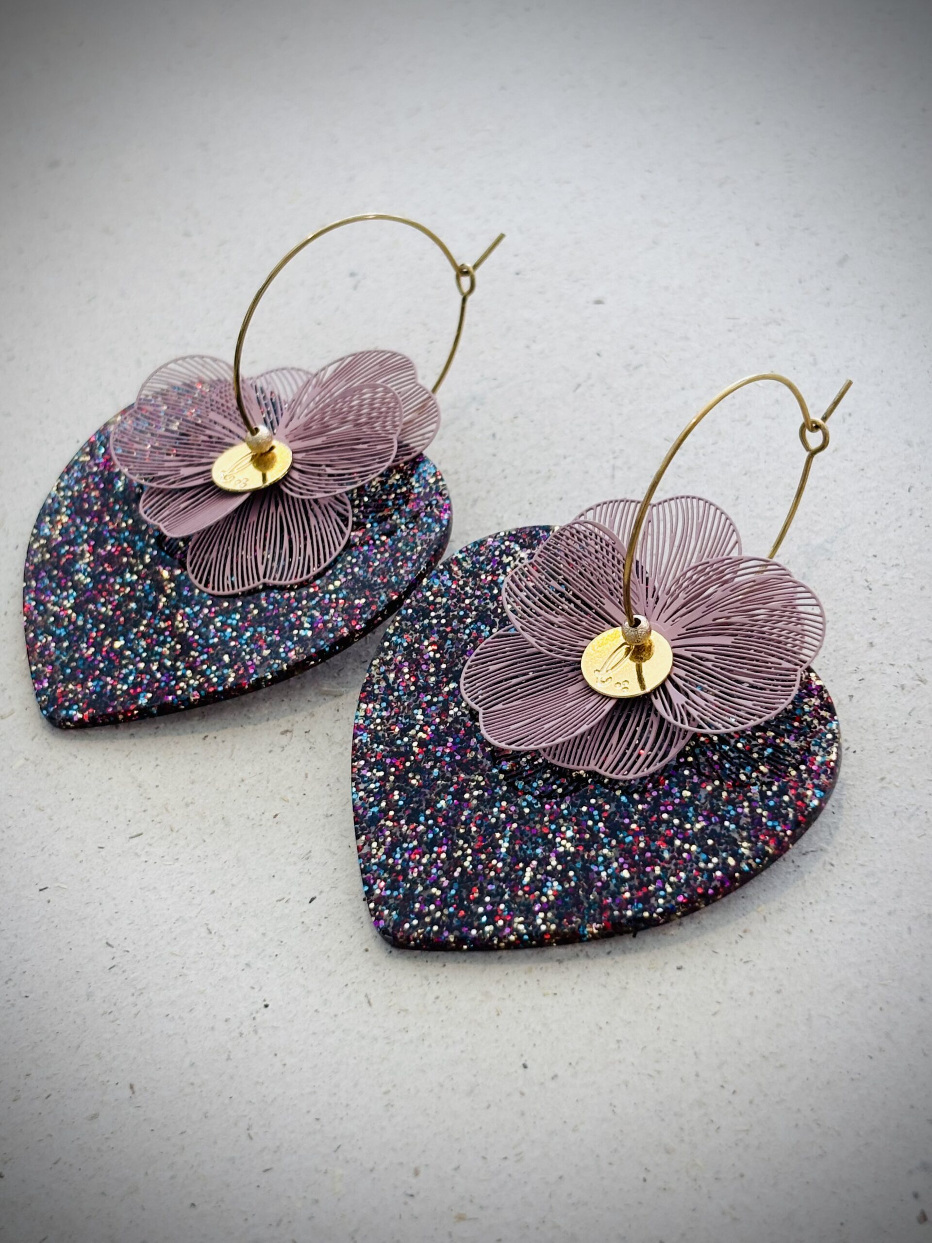 Soyez le premier à laisser votre avis sur “Boucles d’oreilles ROXANE prune à paillettes”