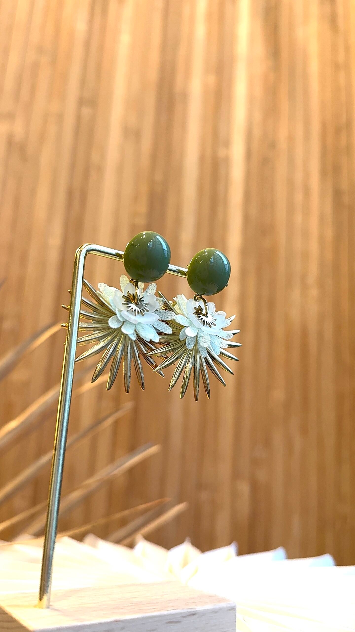 Support en laiton résiné doré à l’or fin, résine, tissus
