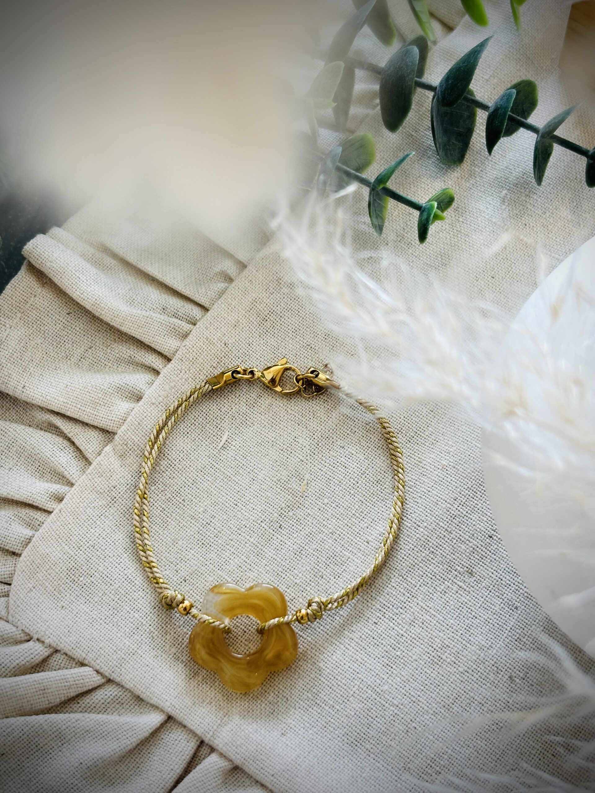 Chaîne et attaches en acier inoxydable, tissus, fleur en résine