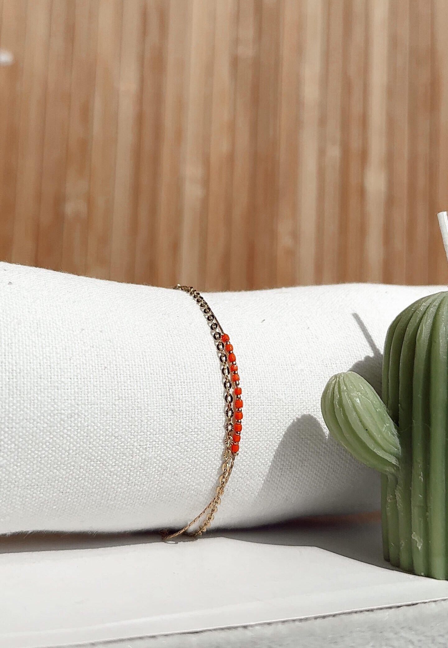 Chaîne et attaches en acier inoxydable, perle en verre