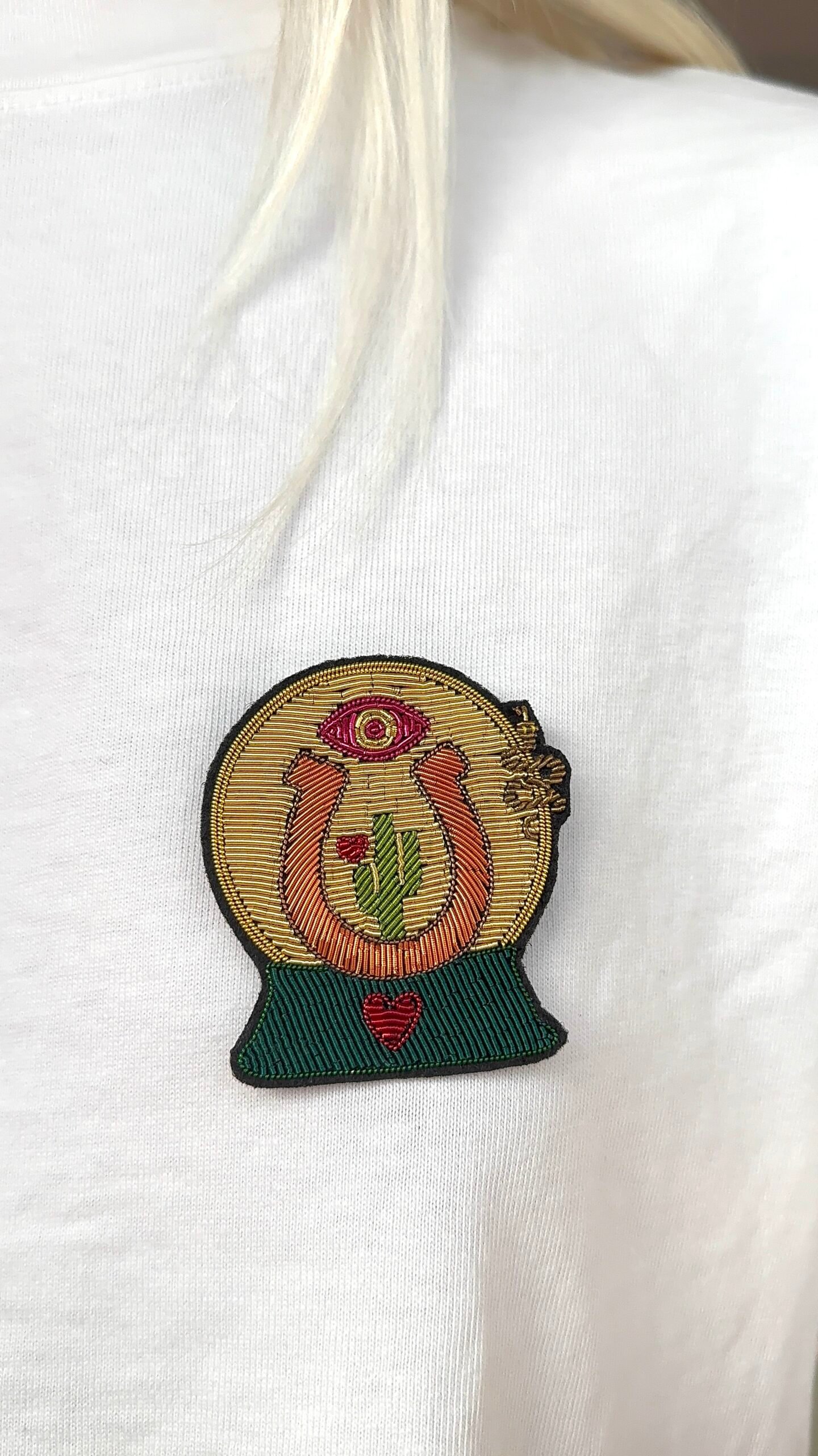 Cette broche réunit chacune des intentions dans une boule de cristal.