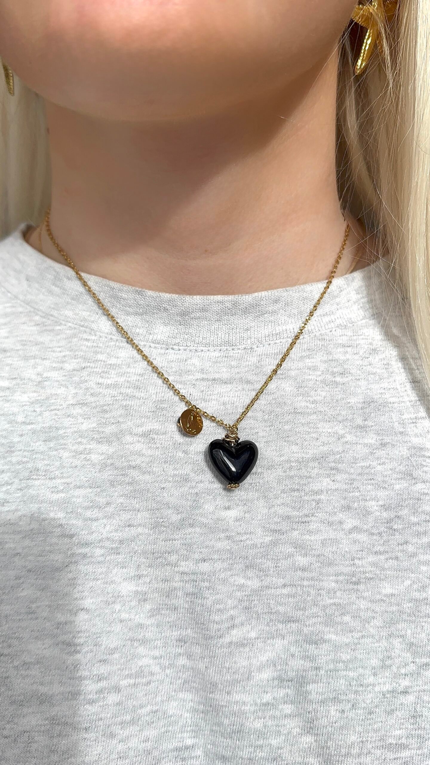 Chaîne et attache en acier inoxydable, perles en résine, médaille en zamac, perles en verre facetté