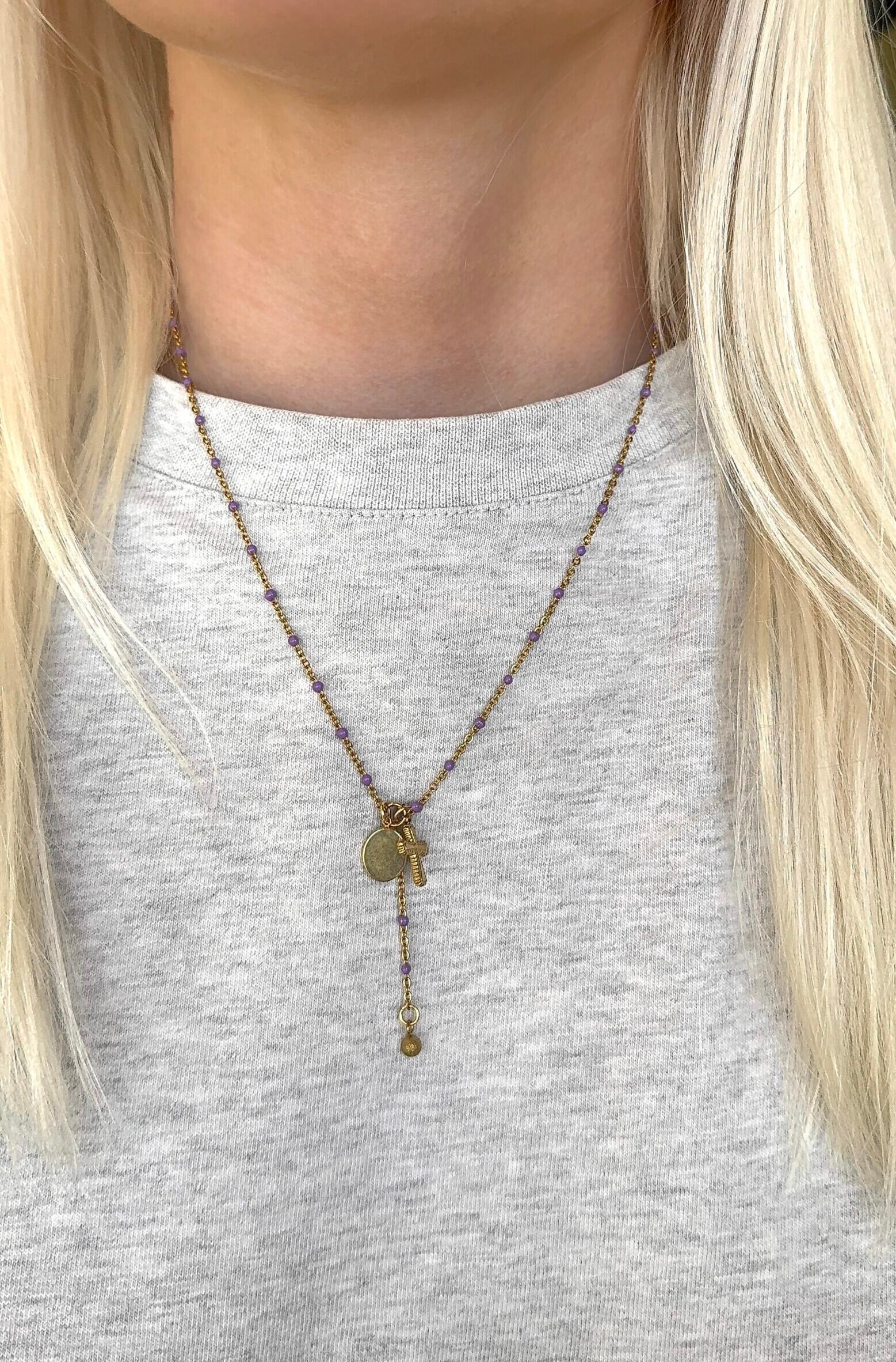 Chaîne en acier inoxydable, médaille en zamac, perles émaillées