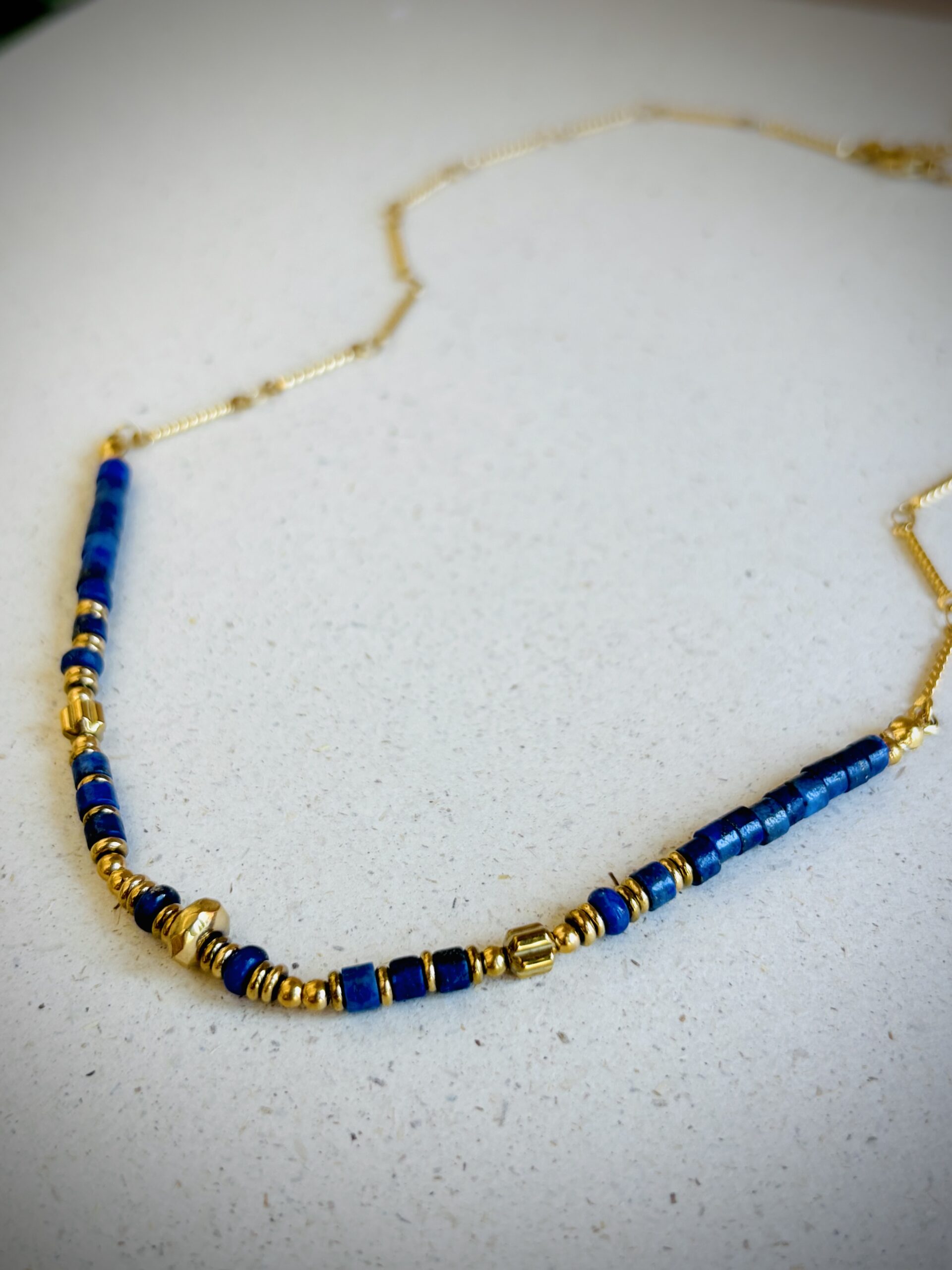 Attache et chaîne en acier inoxydable, perles lapis lazuli facettées