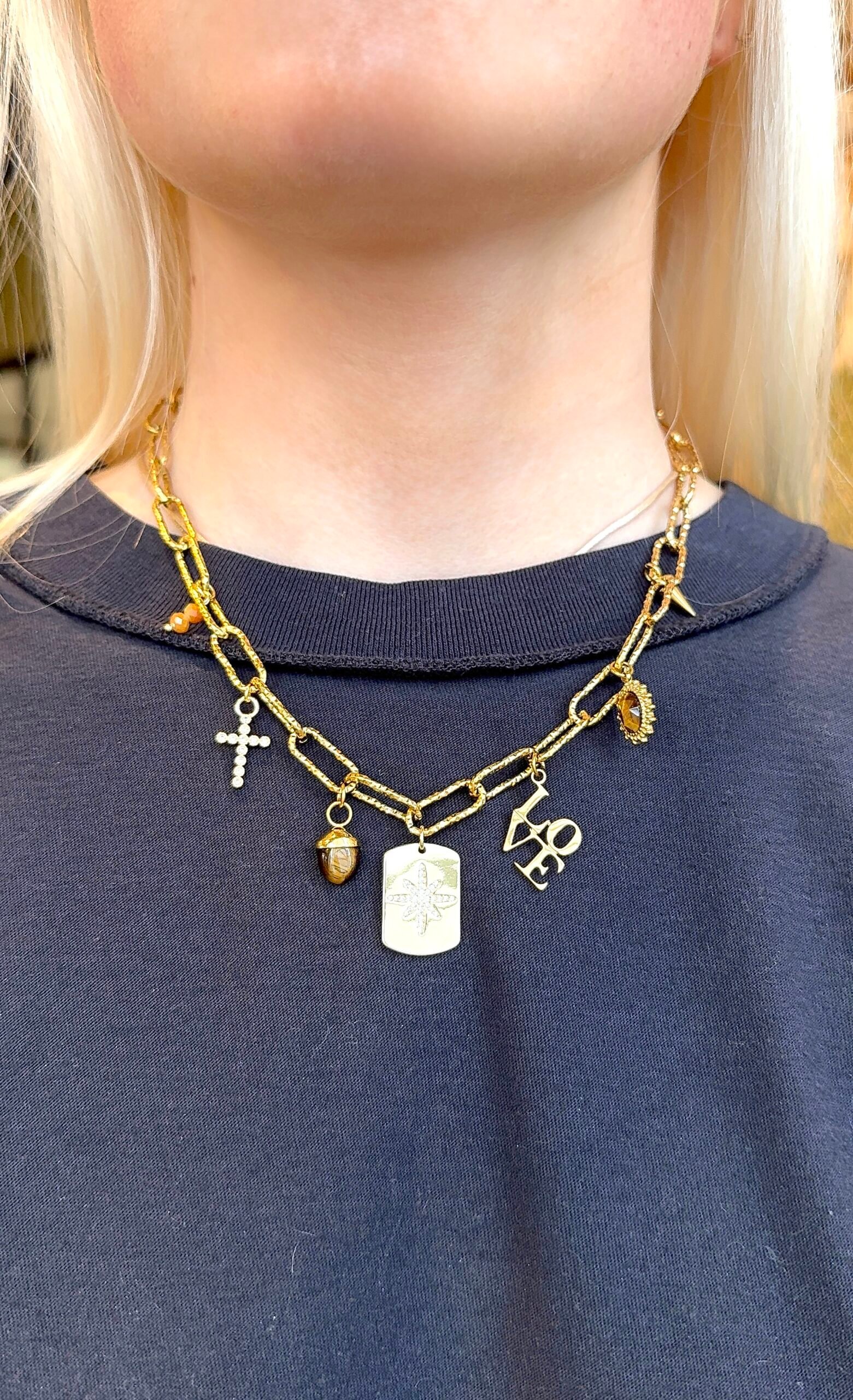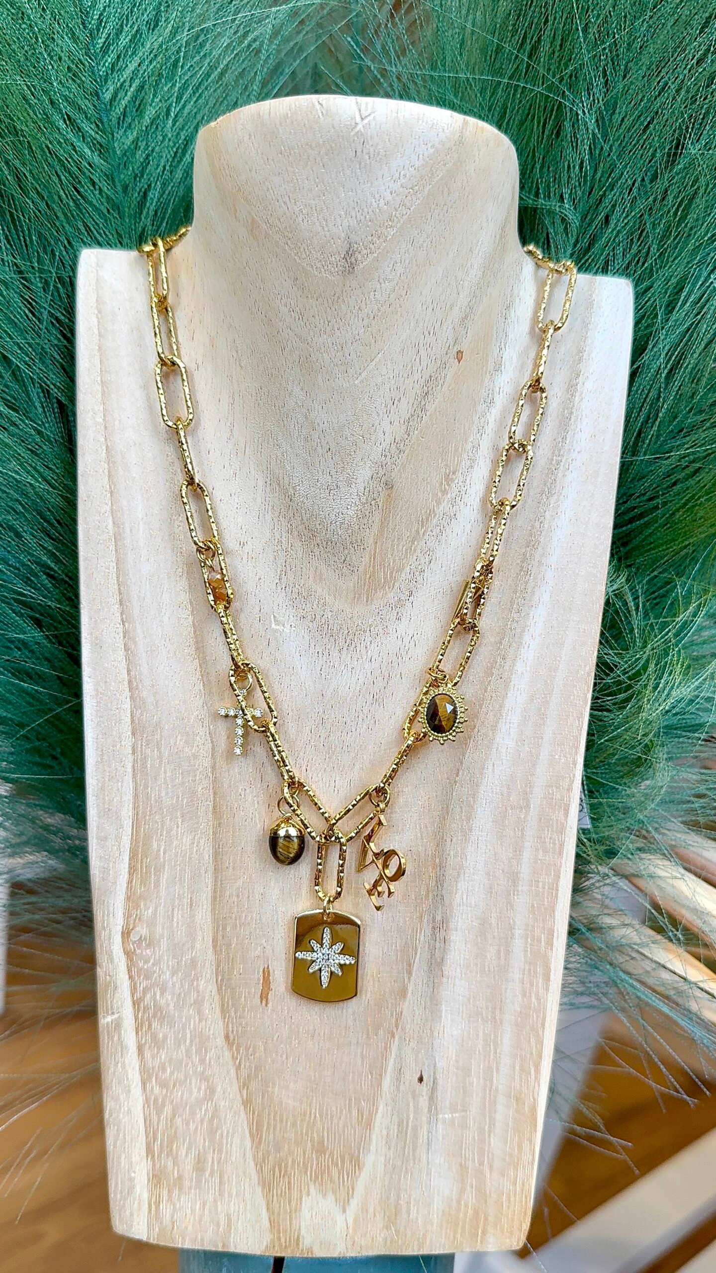 Chaîne et attache en acier inoxydable, perles en verre facetté, pierre oeil du tigre